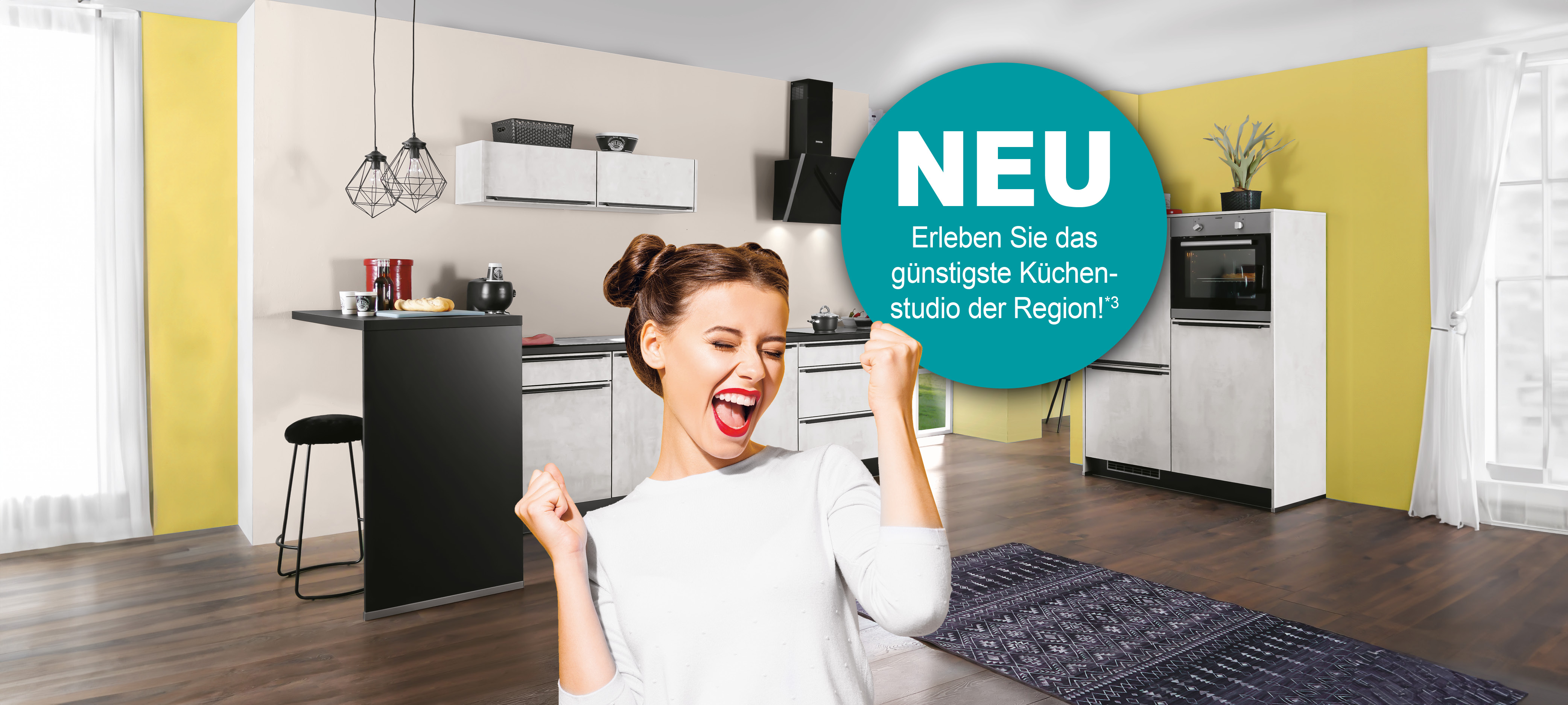 1) Der Preisvorteil gilt bei Küchen-Neuplanungen auf die Holzteile, jedoch nicht auf bereits reduzierte Ware im Haus, Elektrogeräte, Spülen und Zubehör sowie Artikel aus dem Onlineshop. Nicht mit anderen Aktionen kombinierbar. Keine Barauszahlung. Nur eine Prämie pro Person und Kauf. 2) Montage Ihrer neuen Küche sowie Strom- & Wasseranschlüsse an bestehende Leitungen nur innerhalb unseres Lieferradius von 50 km, außerhalb auf Nachfrage. Wenn Herdanschlussdose, Steckdosen, Eckventile und Kunststoff-Abflussrohr fertig installiert sind und mit unserem Installationsplan übereinstimmen, erledigen wir alle Anschlüsse ab einem Warenwert von 3999.- €. Gilt bei Küchen-Neuplanung. 3) Sollten Sie innerhalb von 14 Tagen bei einem anderen stationären Möbelhaus im Umkreis von 60 km ein günstigeres Angebot bei gleicher Leistung erhalten, bekommen Sie den Differenzbetrag von uns zurück erstattet. 4) Barzahlungspreis entspricht dem Nettodarlehensbetrag sowie dem Gesamtbetrag. Effektiver Jahreszins und gebundener Sollzins entsprechen 0,00% p.a. Bonität vorausgesetzt. Partner ist die TARGOBANK AG, Kasernenstr. 10, 40213 Düsseldorf. Die Angaben stellen zugleich das 2/3 Beispiel gemäß § 17 Abs. 4 PAngV dar. Finanzierung ab einem Einkaufswert von 150.- € möglich. Finanzierung nur für Neubestellungen gültig. Gilt nicht auf reduzierte Ware im Haus, mit Sonderpreis kenntlich gemachte Produkte im Haus (Aktionspreis) und bereits getätigte Aufträge. Nicht mit anderen Aktionen kombinierbar.